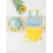 Βρεφικό μαγιό-μπικίνι με καπέλο σε υπέροχο καλοκαιρινό σχέδιο.