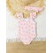 Βρεφικό ολόσωμο μαγιό με βολάν στα μανίκια και σετ την κορδέλα.