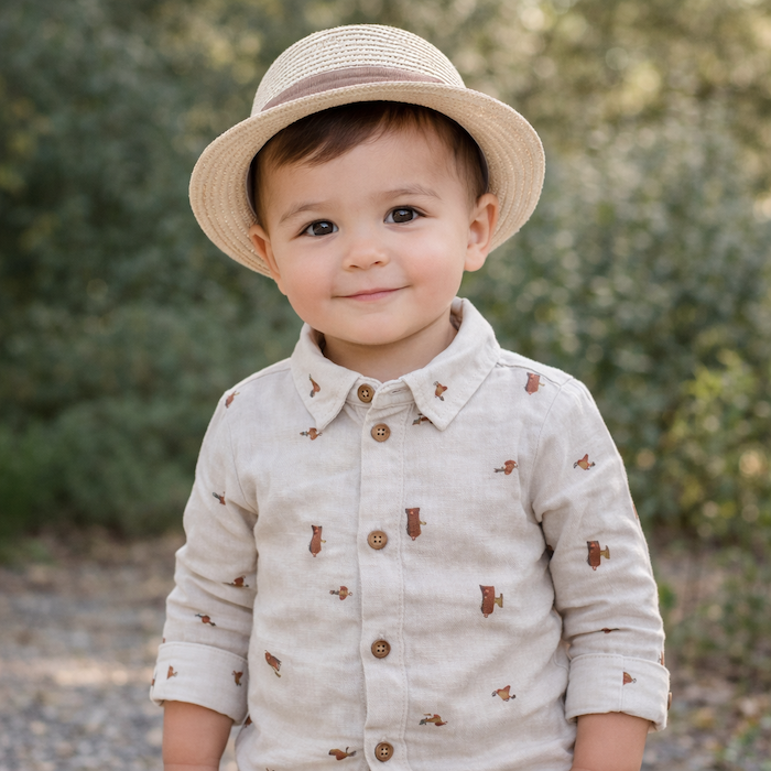 Βαμβακερό τύπου λινό πουκάμισο σε υπέροχο σχέδιο.