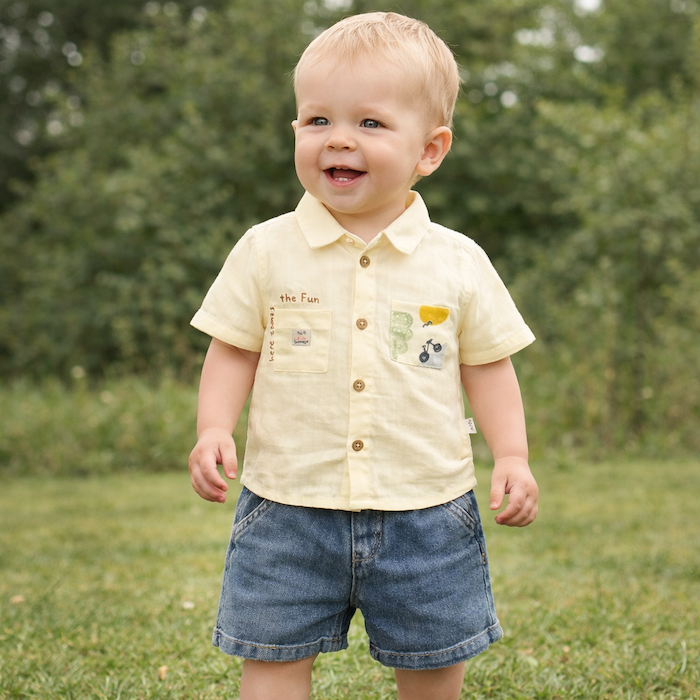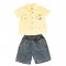 Υπέροχο σετάκι για τον μικρό κύριο της οικογένειας.Λευκό λινό βαμβακερό πουκαμισάκι και τζην βερμούδα με λάστιχο.