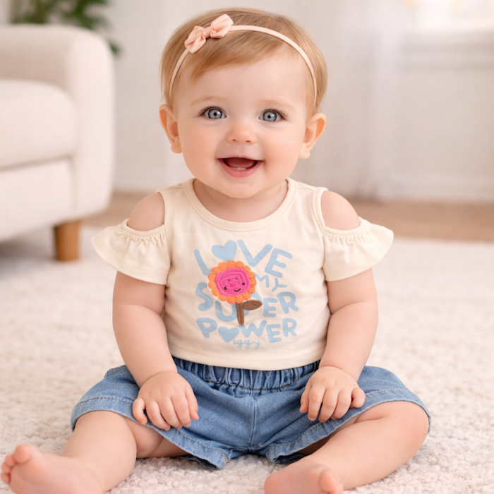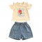 Μπλουζάκι με πλεκτό σχέδιο και λεπτομέρεια στα μανίκια και τζην σορτσάκι.