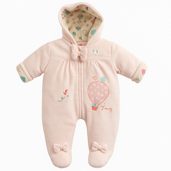 προσφέροντας ζεστασιά, άνεση και στυλ. Το ροζ χρώμα, τα χαριτωμένα φιογκάκια και το κεντημένο σχέδιο με αερόστατο