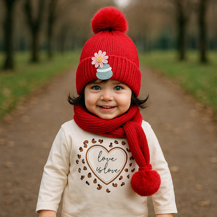 Σετ Μάλλινο Σκουφάκι με Κασκόλ κόκκινο.